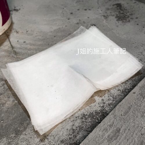 所以不織布的用途就是增加牆面與地面的延續,使後續塗佈更順暢,防水塗層就比較容易有展延,也不會因為錯位或是孔洞,造成內角漏水。