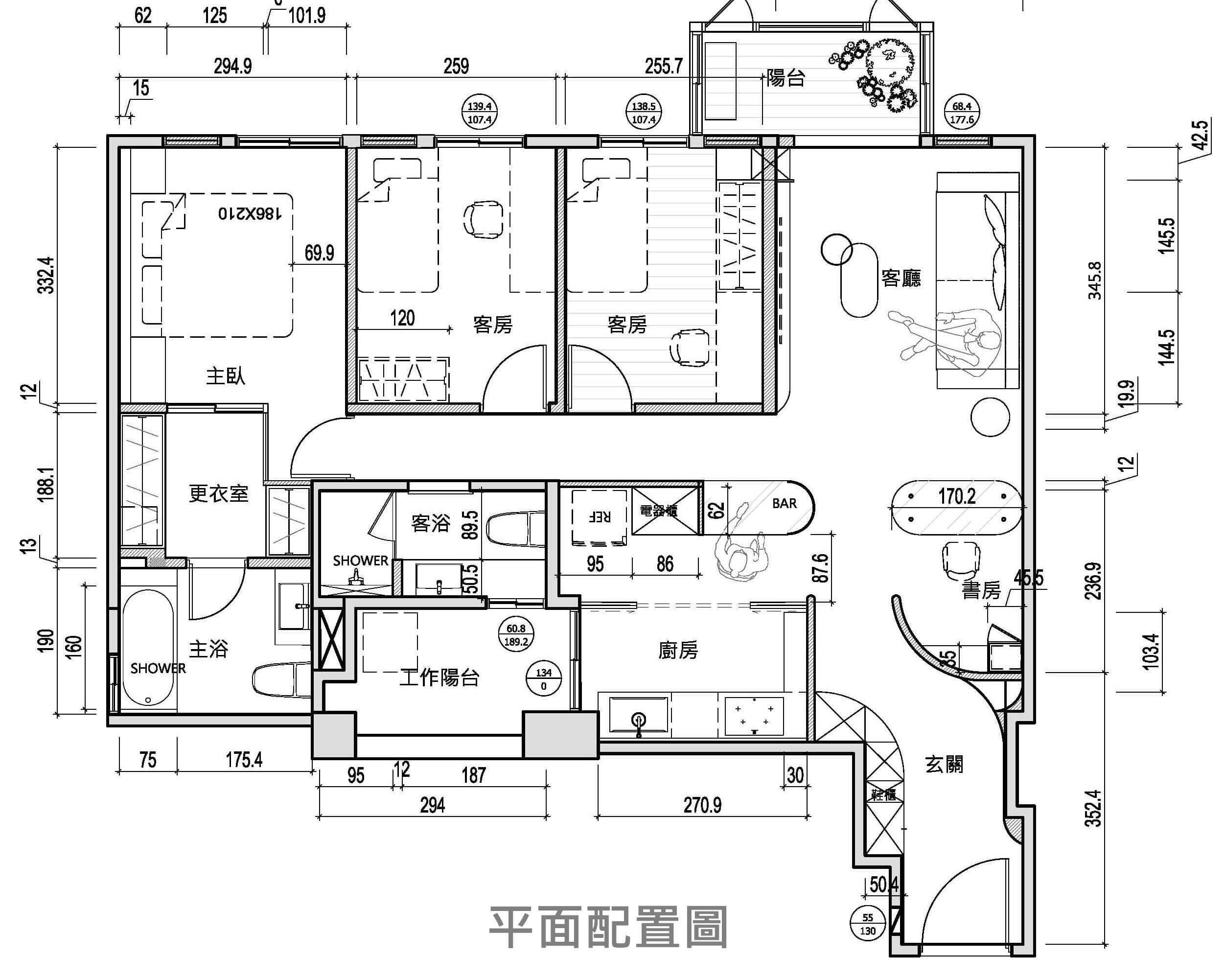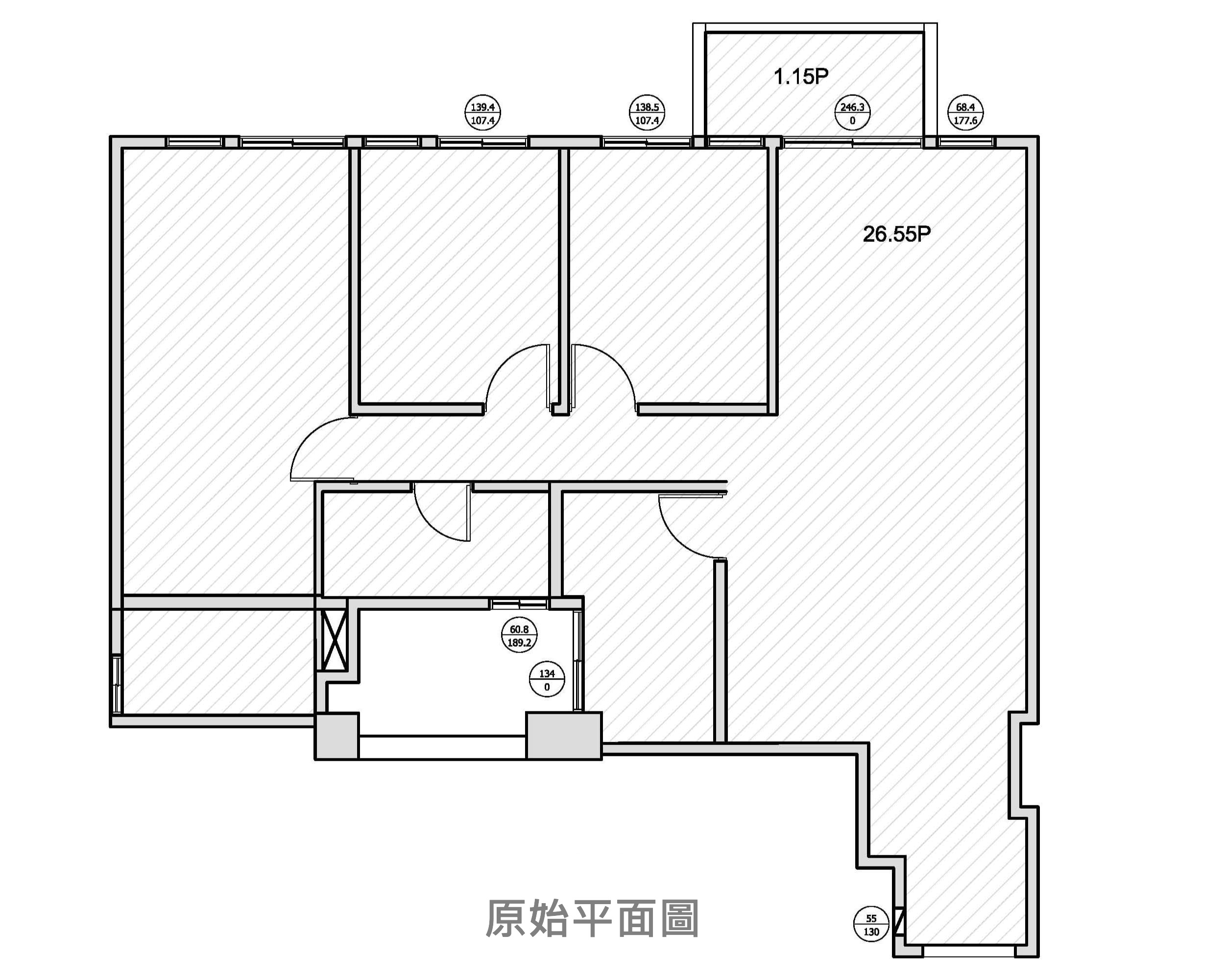 主要建材 | 60X120仿清水模地磚,司曼特灰泥塗材SCT-309淺白灰色,栓木鋼刷50條山形紋染白,栓木鋼刷50條山形紋染黑,黑鐵鐵件烤漆,浴室60*12仿大理石紋石英磚,油漆色號1501