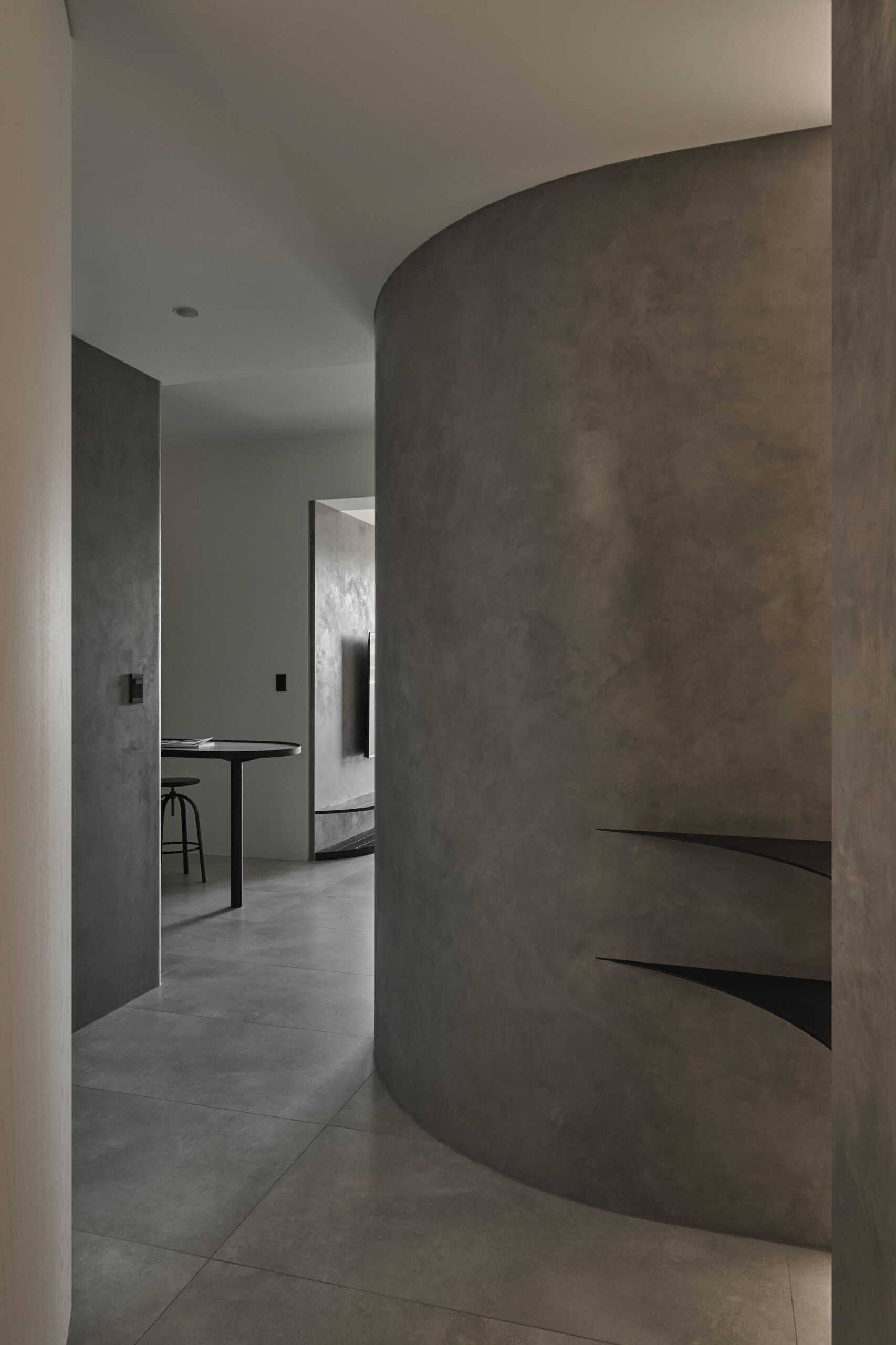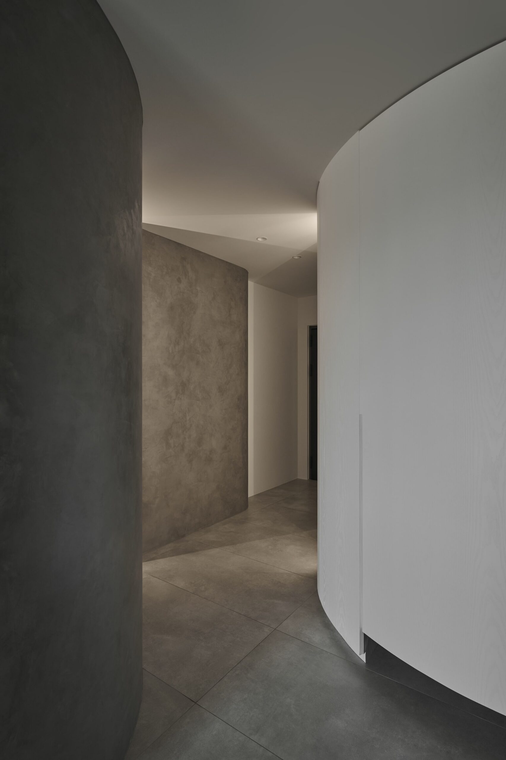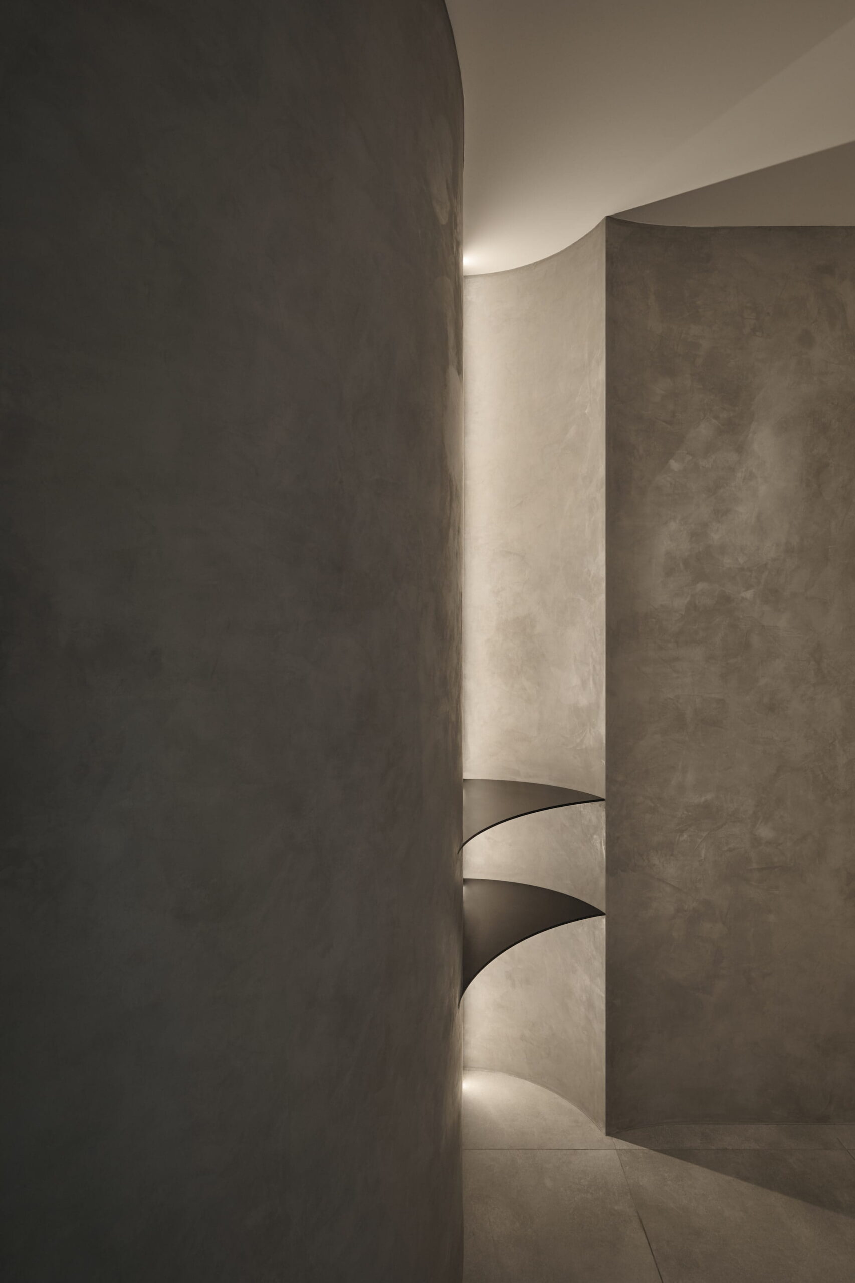 弧形牆不是柔軟,而是力道的轉彎。行走其間,像穿越一段沉默的意志,