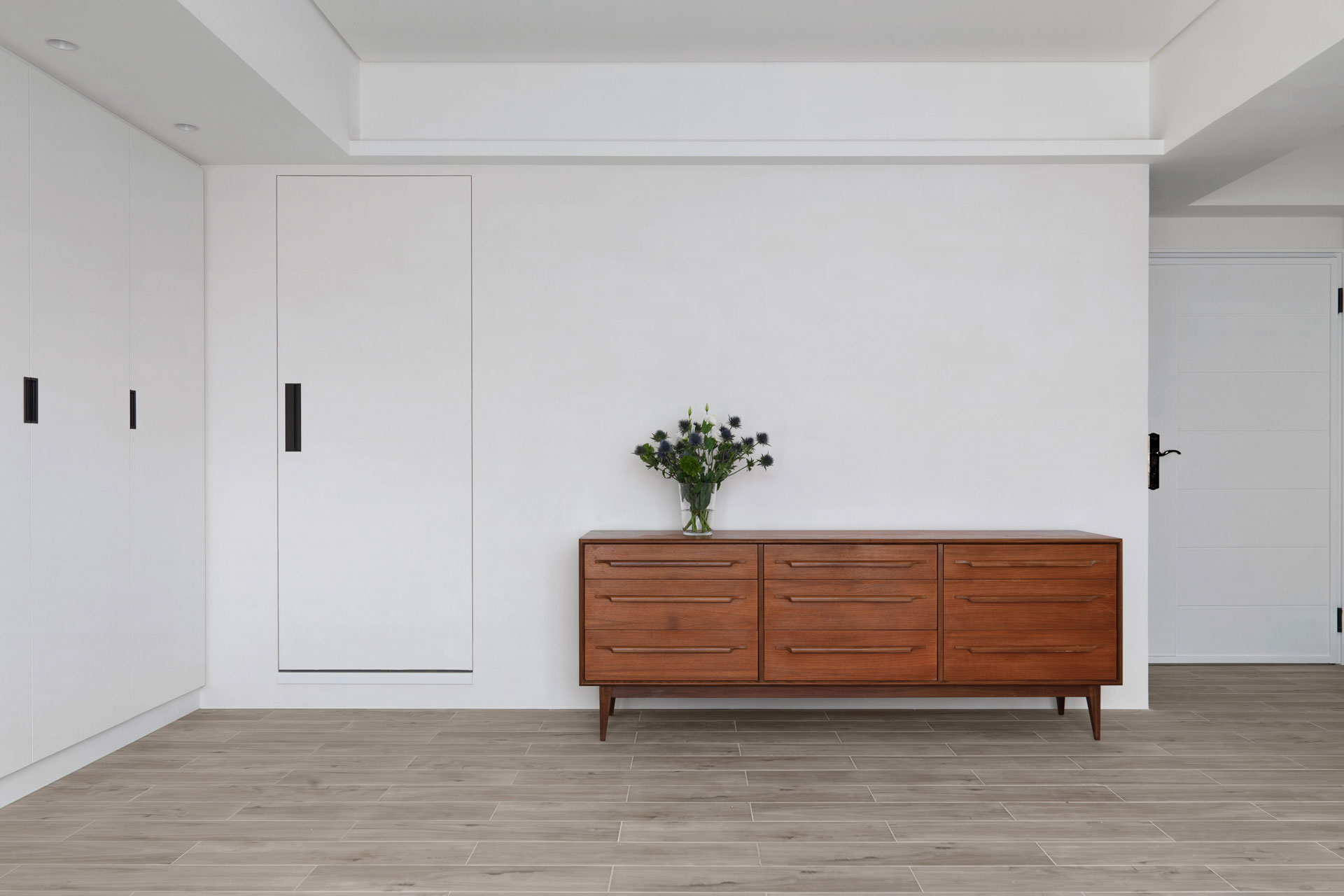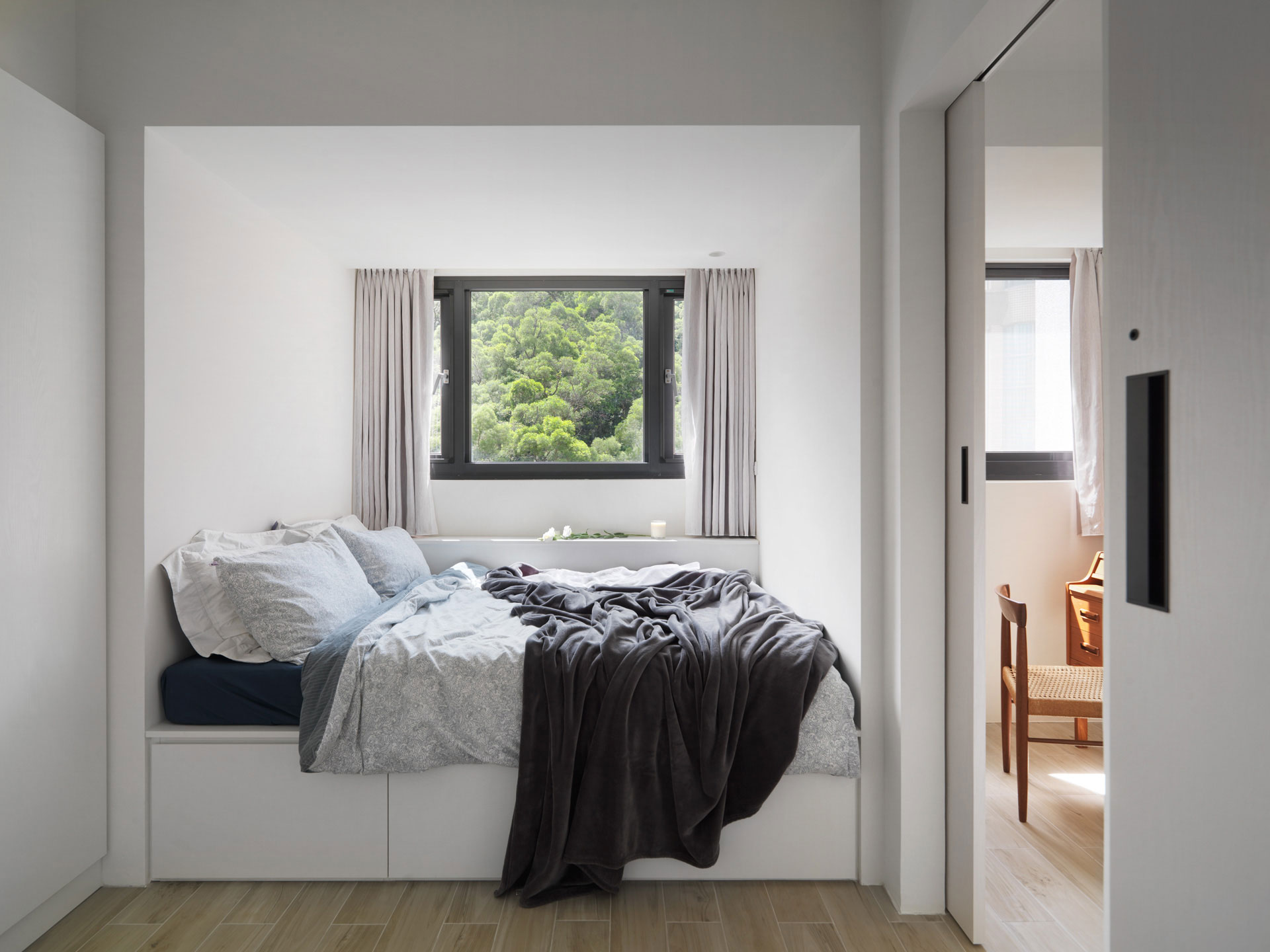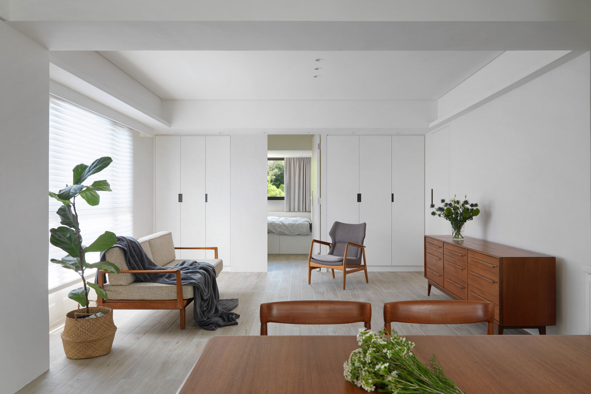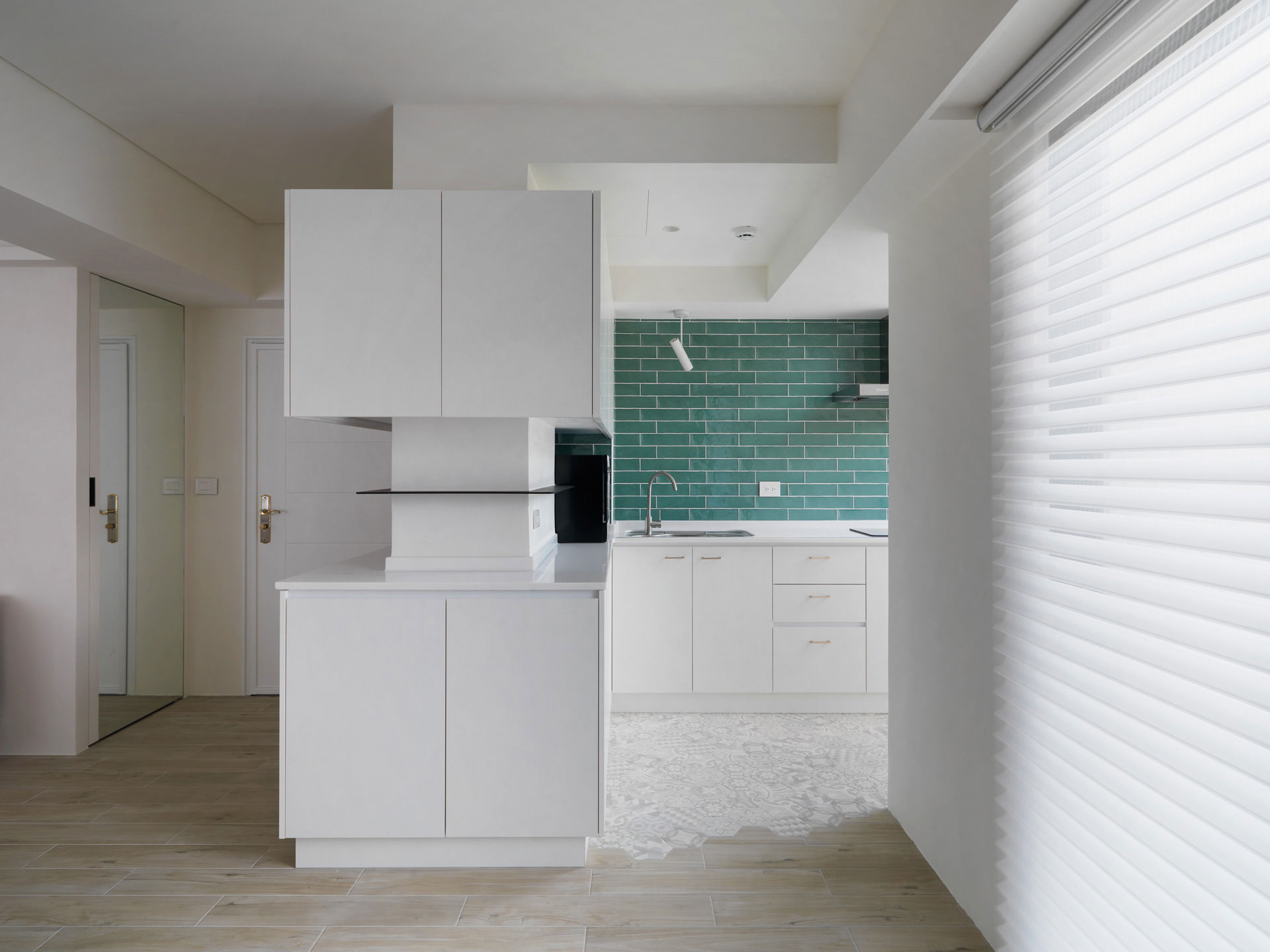 作者: user / 15 4 月, 2025 室內面積|室內20坪裝修需求| 全屋規劃房屋狀態|10年新古屋 格局|集合住宅主要建材|長型木紋磚,日本珪藻土,義大利復古磚,木紋白色系統板,玫瑰金五金,75%透光柔光簾 這個設計以一字形為主軸,將空間都留給公領域,使客廳、餐廳和廚房串聯在一起,運用開放式格局消除了牆壁的隔閡,讓整個空間看起來更寬敞、通風。單純的流暢動線,讓人在空間中自由穿梭,不受阻礙。並重新打開廚房的天窗和落地窗,巧妙地借景取景,將戶外的山景引入室內。這不僅增加了視覺深度,還讓室內與自然融為一體。小空間的開放式格局,以其簡約、優雅和實用的特點,展現了「少即是多」的美學精髓 homify媒體報導 100室內設計-屋主專訪與回饋