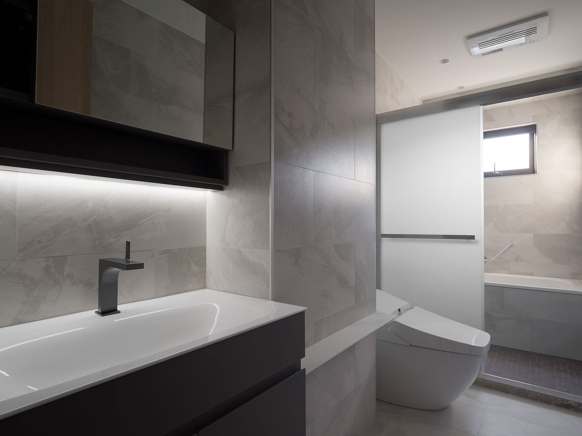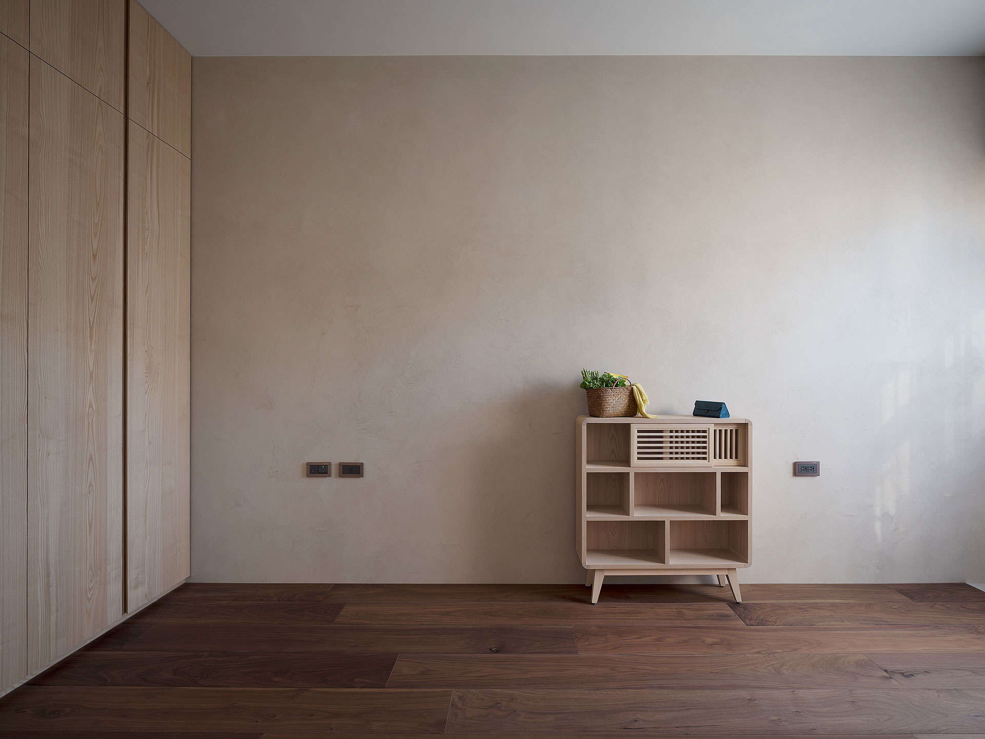 主要建材 |  長型木紋磚日本珪藻土,義大利復古磚,木紋白色系統板,玫瑰金五金,75%透光柔光簾