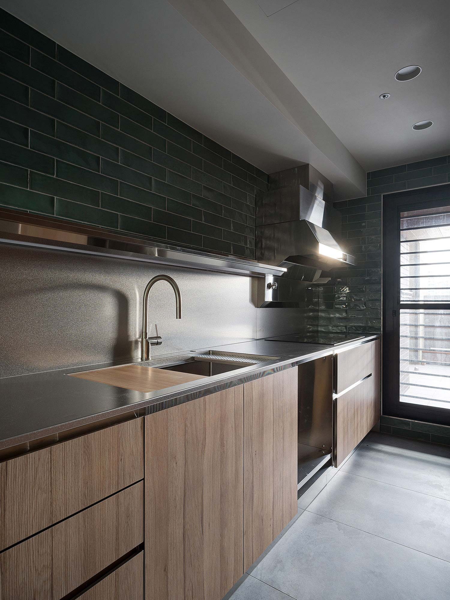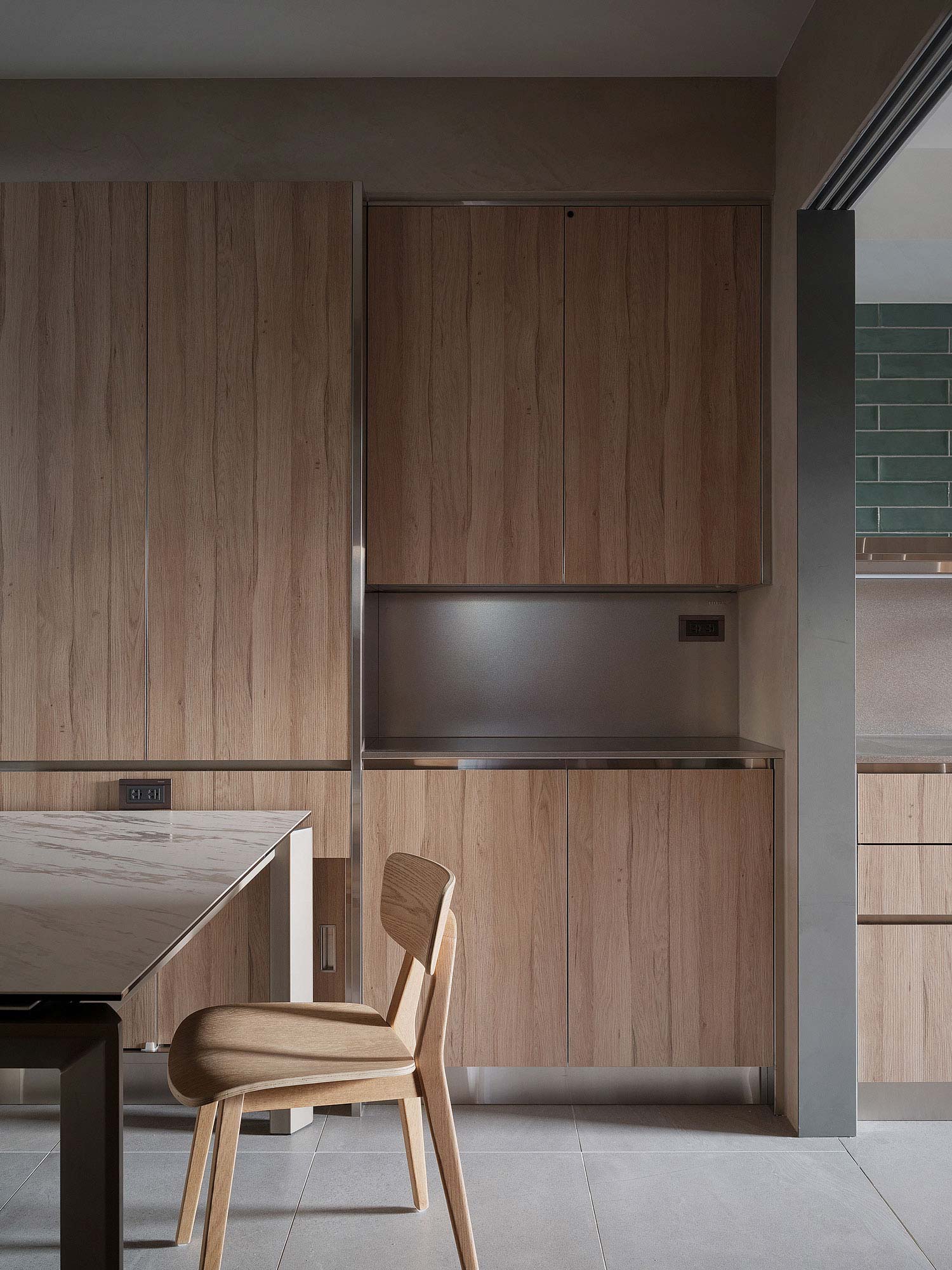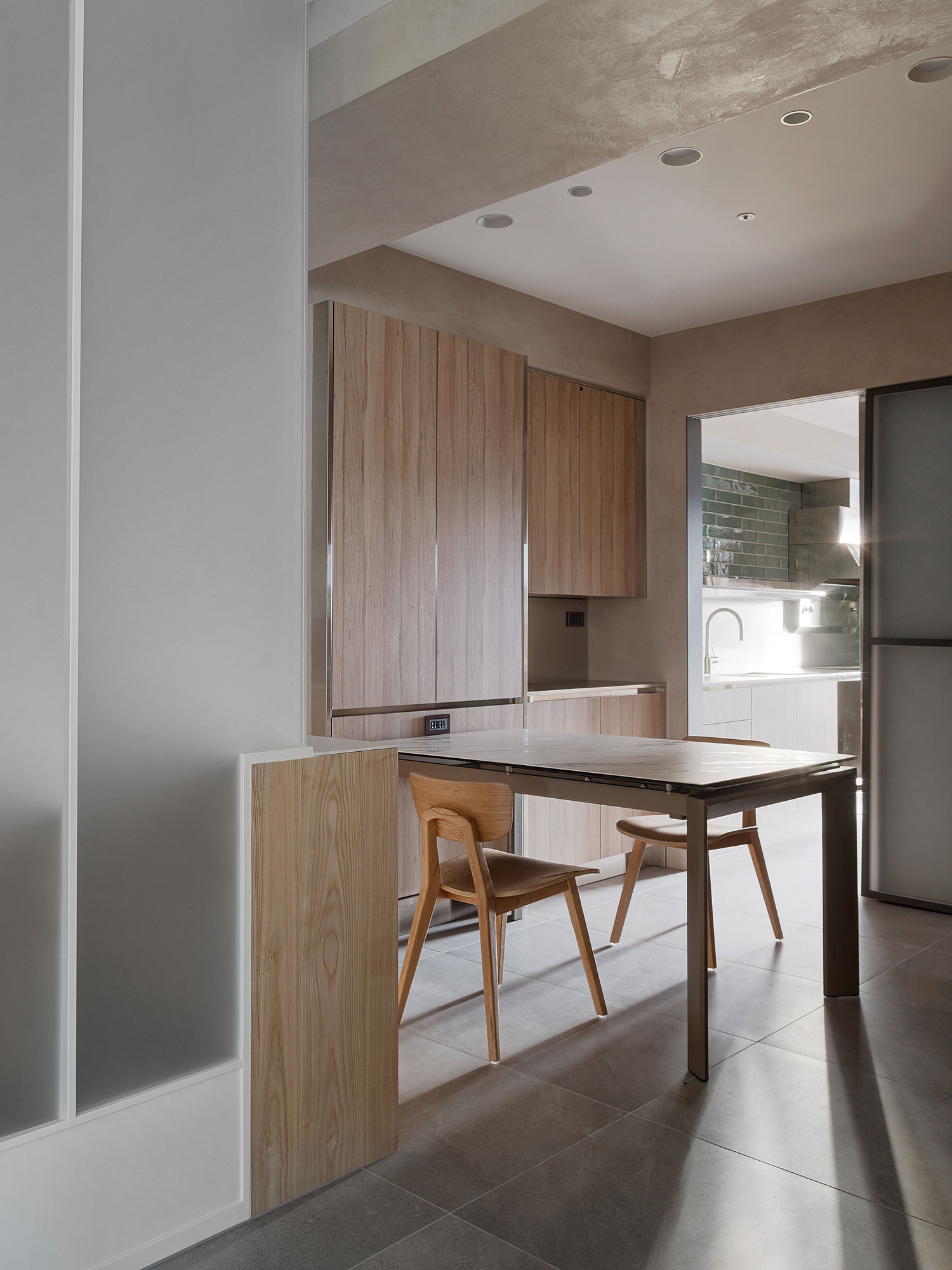 單純的流暢動線,讓人在空間中自由穿梭,不受阻礙。並重新打開廚房的天窗和落地窗,巧妙地借景取景,將戶外的山景引入室內。這不僅增加了視覺深度,還讓室內與自然融為一體。